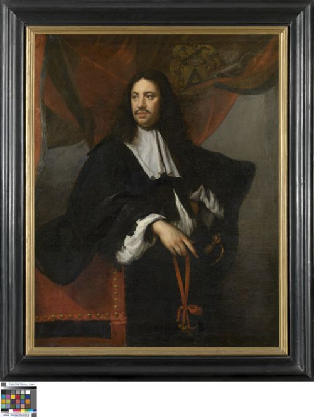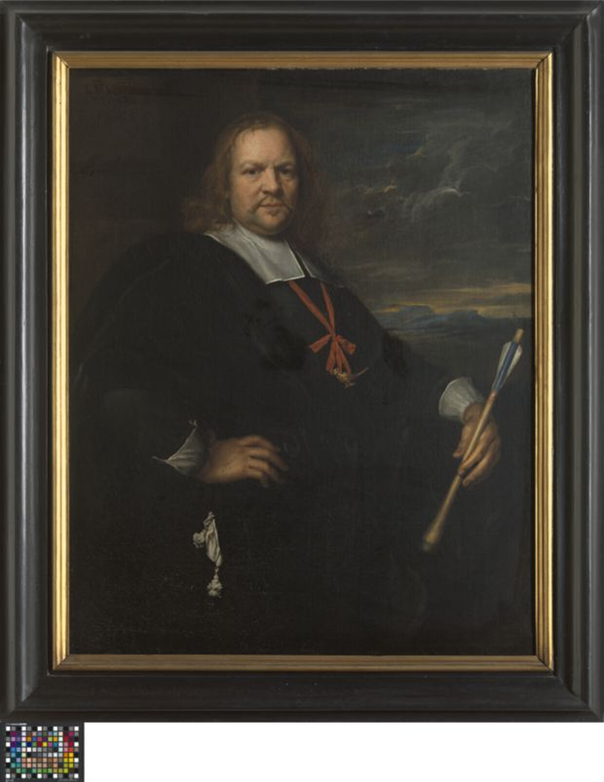17de eeuwVan Kerckhove is geportretteerd tot aan de knieën, in driekwartswending, met het gezicht naar de toeschouwer gericht. Zijn rechterhand houdt hij tegen zijn heup, in zijn linkerhand heeft hij een pijl vast. Rechts is er een doorkijk naar een erg bewolkte achtergrond. Bovenaan rechts is het monogram van Leonard van Kerckhove aangebracht. Leonard van Kerckhove was in 1659 koning van de kruisboogschuttersgilde van Sint-Joris. Dat dit schilderij in 1665 pas is vervaardigd, wordt verklaard door het feit dat het gemaakt werd naar aanleiding van de bestelling van het pendant ervan, het portret van gildehoofdman Jan-Filips van Boonem (0000.GRO0185.I). (Naar: H. Vlieghe, Stedelijke Musea Brugge. Catalogus Schilderijen 17de en 18de eeuw, Brugge, 1994, p. 207.)