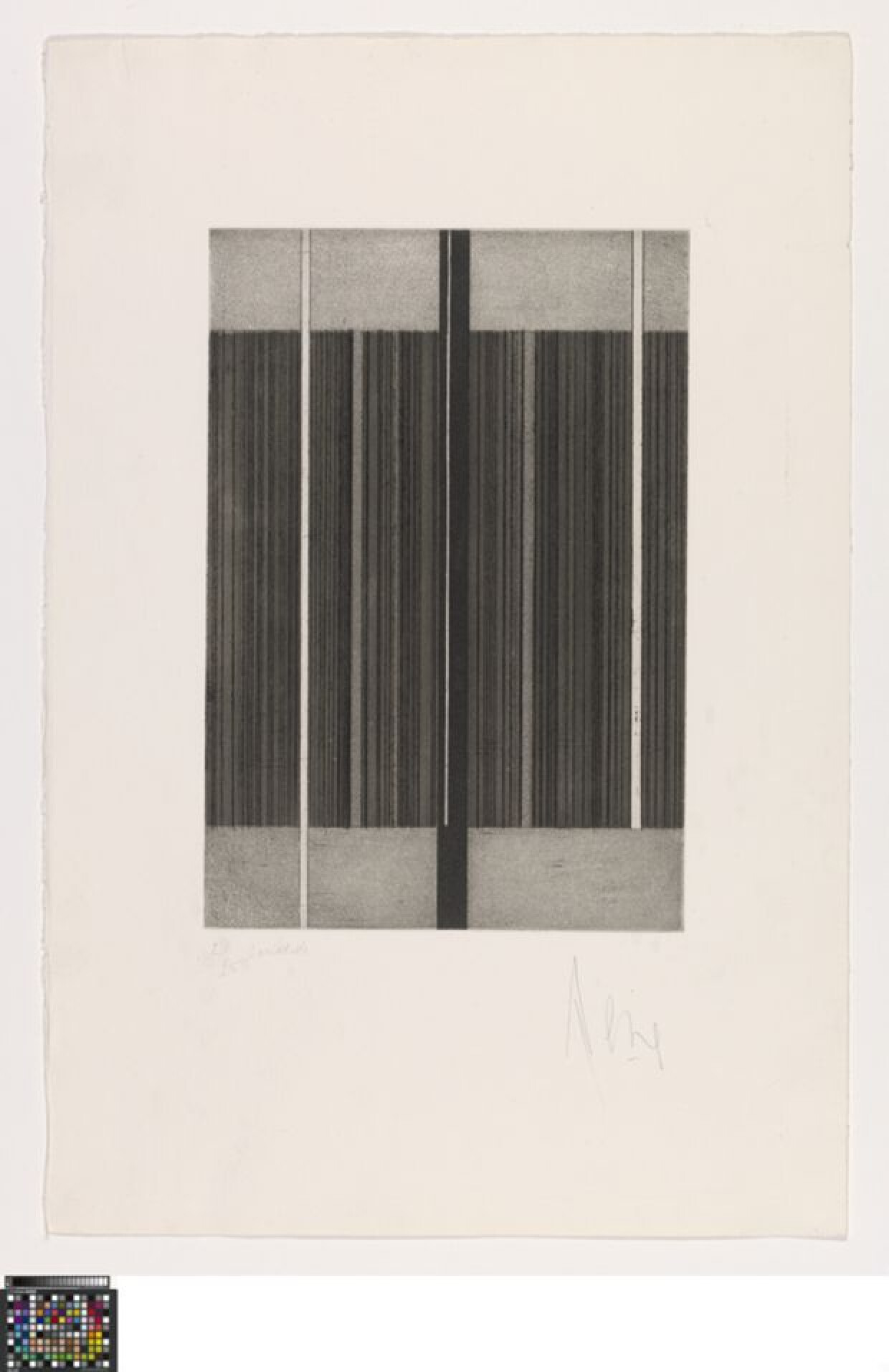 Kunstenaar Luc Peire (1916-1993) creëerde schilderijen, grafiek en architecturale integraties. Hij evolueert vanuit het expressionisme naar een stilering van de menselijke figuur om vervolgens in het midden van de jaren ‘50 zijn eigen stijl te ontwikkelen: het abstract verticalisme. Centraal in Peires abstract werk is de verticaliteit, de ruimte en de ritmiek. De verticale beweging staat voor hem symbool voor de mens als spiritueel wezen. Dit vertaalt zich in een compositie van verticale lijnen, balken en kleurvlakken die ruimte suggereren. Kenmerkend is ook het intens coloriet zoals rood, blauw, geel en oranje, dat gecontrasteerd wordt met zwart en wit. Naast schilder was Luc Peire ook graveur. Hij bezat een uitstekende kennis van de traditionele druktechnieken en realiseert etsen en aquatinten. Peire prepareert en graveert zelf zink- en koperplaten die hij op zijn eigen drukpers afdrukt of laat afdrukken in gespecialiseerde drukkerijen in Parijs. Het Prentenkabinet van Musea Brugge bezit het volledig grafisch oeuvre van Luc Peire, dat in 1992 geschonken werd door de kunstenaar zelf. Het gaat om 86 ingelijste werken. In 2017 schonk de Stichting Jenny & Luc Peire het laatste grafisch werk dat Luc Peire realiseerde in 1993 voor zijn overlijden in datzelfde jaar. Deze werken dateren van 1943-1993 en bieden een mooi overzicht van Luc Peires stijlevolutie. Sommige gravures worden gerealiseerd naar een van zijn schilderijen, zoals bijvoorbeeld ‘Ramses’ of ‘Yagul’. Het grafisch oeuvre van Luc Peire is onder te verdelen in drie periodes: - Figuratieve periode van 1935-1944. - Overgang naar abstractie rond 1955 met de etsen ‘Composition’ en ‘Composition-Espace’. - Ontwikkeling van zijn verticale abstracte stijl en uitbouw van zijn grafisch oeuvre vanaf 1964 tot 1993. Het graveren wordt een geliefde techniek van Peire vanaf 1964. Hij realiseert gravures in grijstinten, maar ook kleurdrukken waarbij hij één kleur op de voorgrond brengt. In deze periode heeft Luc Peire zijn eigen abstracte stijl verder ontwikkeld. Net zoals in zijn schilderijen bouwt hij zijn gravures op vanuit een ritmische compositie van verticale lijnen en kleurstroken op een monochroom vlak.