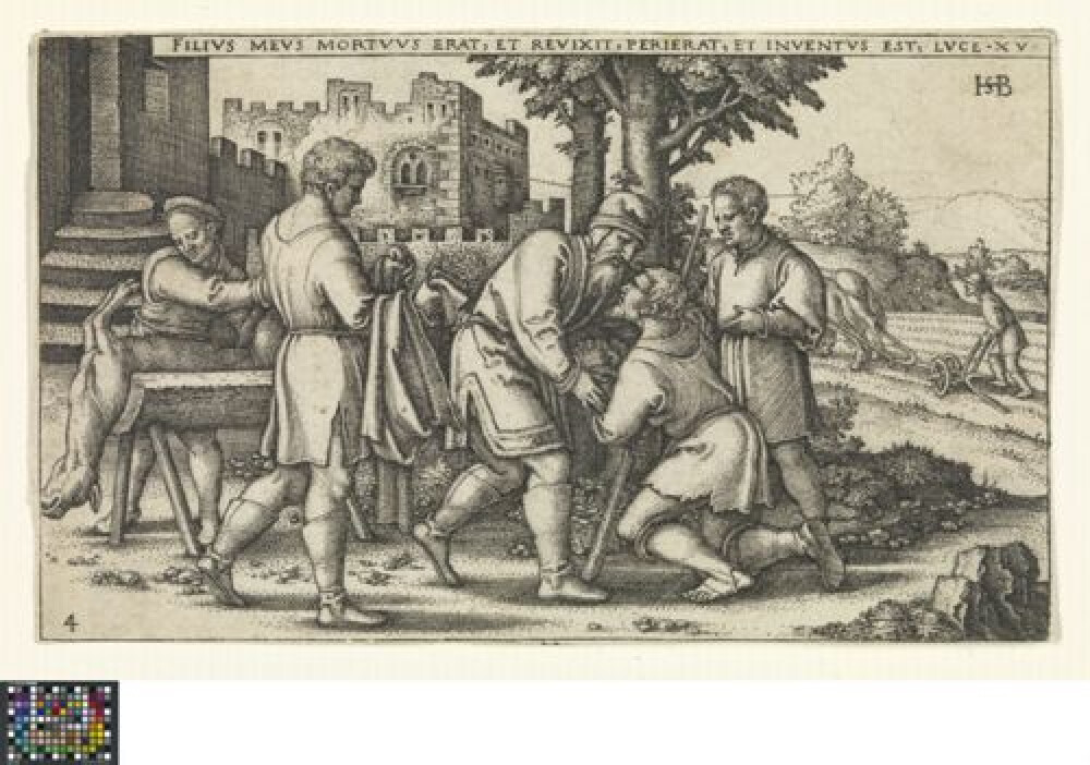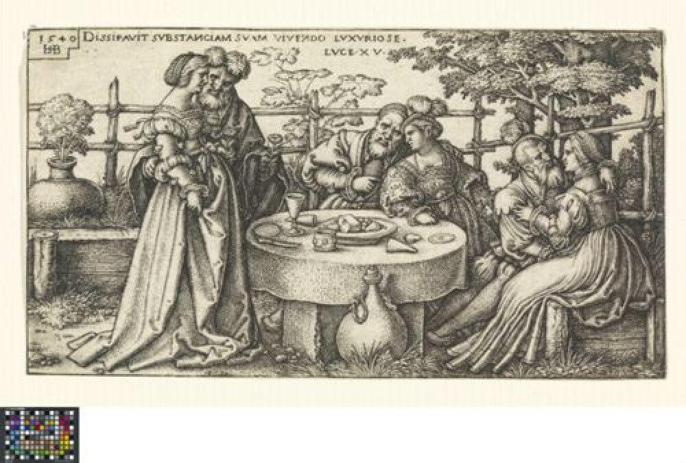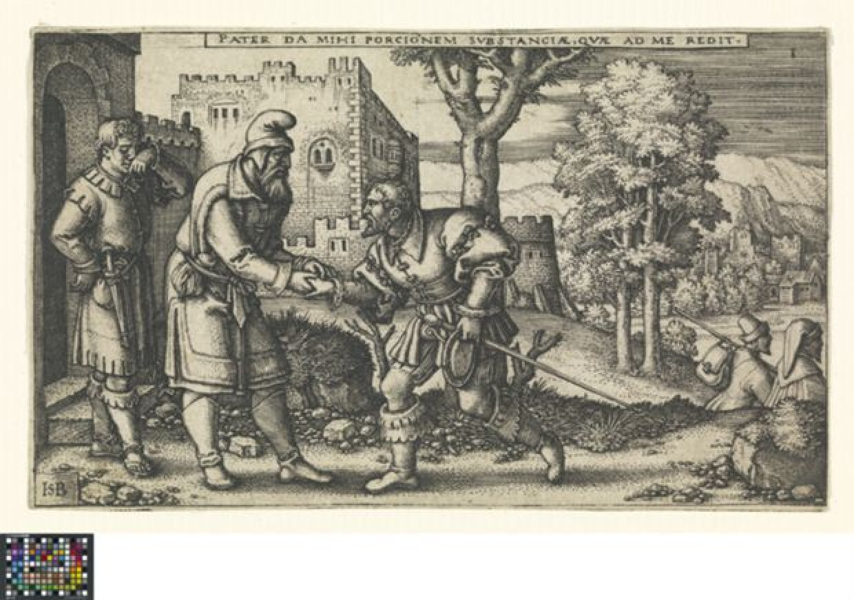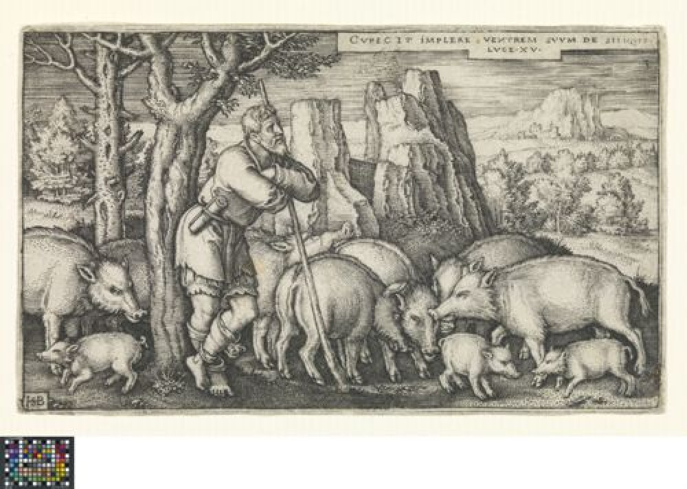 16de eeuwDeze gravure behoort tot een reeks van vier prenten die de parabel van de verloren zoon voorstellen.
