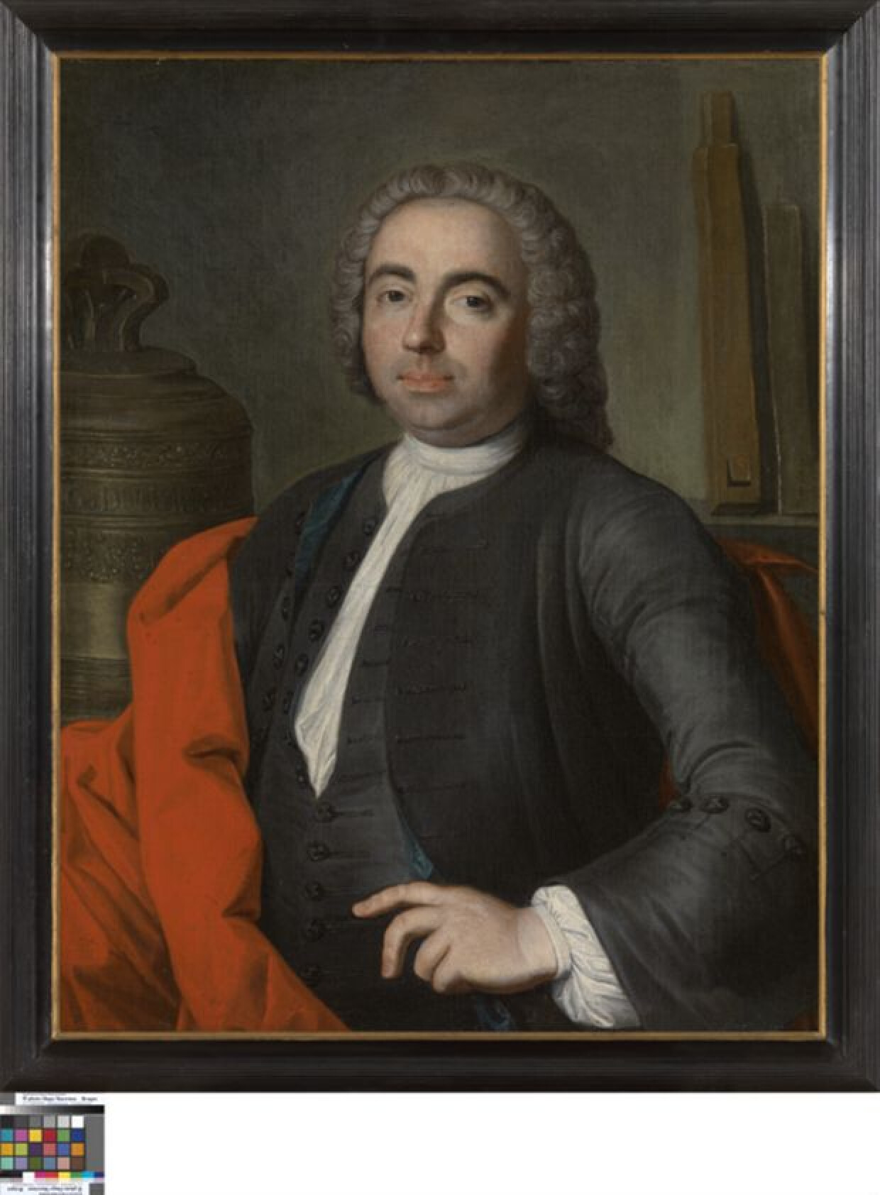 18de eeuwPortret van een man, tot aan de heupen, in driekwartwending naar links. Hij houdt zijn linkerhand ostentatief tegen zijn heup. Links staat een klok, waarop de naam Dumery is vermeld. Joris Dumery was afkomstig uit Antwerpen en vestigde zich in Brugge als klokkengieter, waar hij onder meer in 1741 door het stadsbestuur gevraagd werd een nieuwe beiaard voor het belfort te vervaardigen. Hij was gehuwd met Maria de Hondt, zelf dochter van een klokkengieter uit 's-Hertogenbosch, en weergegeven op het pendant 0000.GRO1335.I. Beide anonieme werken werden eerder toegeschreven aan Matthias de Visch, maar zouden stilistisch kunnen toegeschreven worden aan Suweyns.