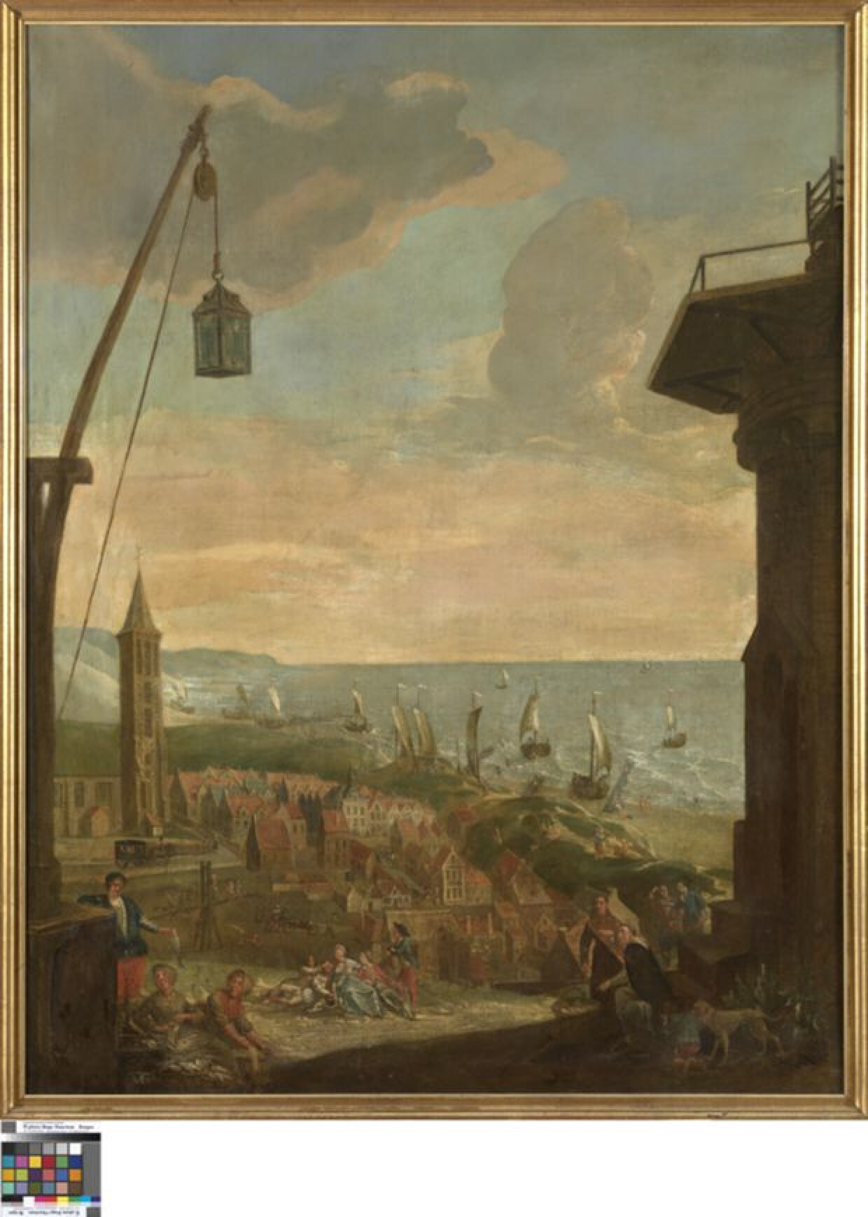 19de eeuw 18de eeuwDeel van een reeks salonstukken met gezichten op Brugge en omgeving. Hier zou Blankenberge voorgesteld zijn. De toren van het oude Sint-Antoniuskerkje is herkenbaar, maar iets te slank weergegeven. In de verte een zicht op de duinen en de zee.