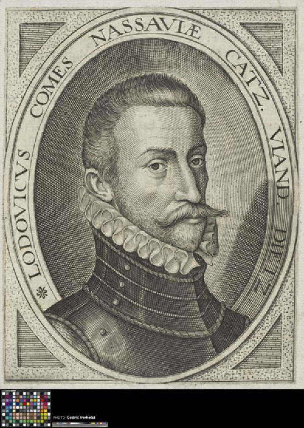 Busteportret van Willem Lodewijk (Dillenburg, 1560 - Leeuwarden, 1620) waarin hij centraal is gepositioneerd en de beschouwer aankijkt. Hij was graaf van Nassau-Dillenburg van 1606 tot 1620 en stadhouder van Friesland, Groningen en Drenthe. Hij is geportretteerd met een snor en baard. Hij draagt een kraag en heeft een harnas aan. Het portret bevindt zich in een ovalen omlijsting met Latijnse inscriptie. De prent maakt deel uit van een serie portretten. De reekstitel van de publicatie is niet gekend. De prent maakt deel uit van het album met (losse) portretten uit de 16de en 17de eeuw (2014.GRO0019.III).