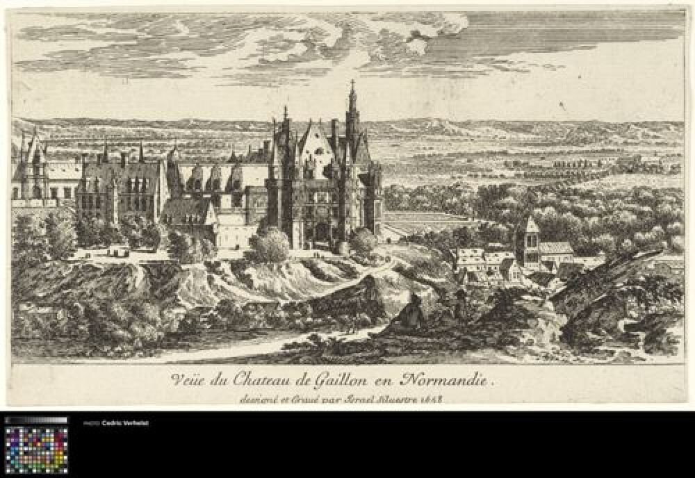 17de eeuwDe prent toont een aantal figuren die zich ontspannen in het park voor het kasteel van Gaillon. Het kasteel neemt de rechterhelft van de voorstelling in en geeft zo een doorzicht naar de aangelegde tuinen in het dal links op de prent.