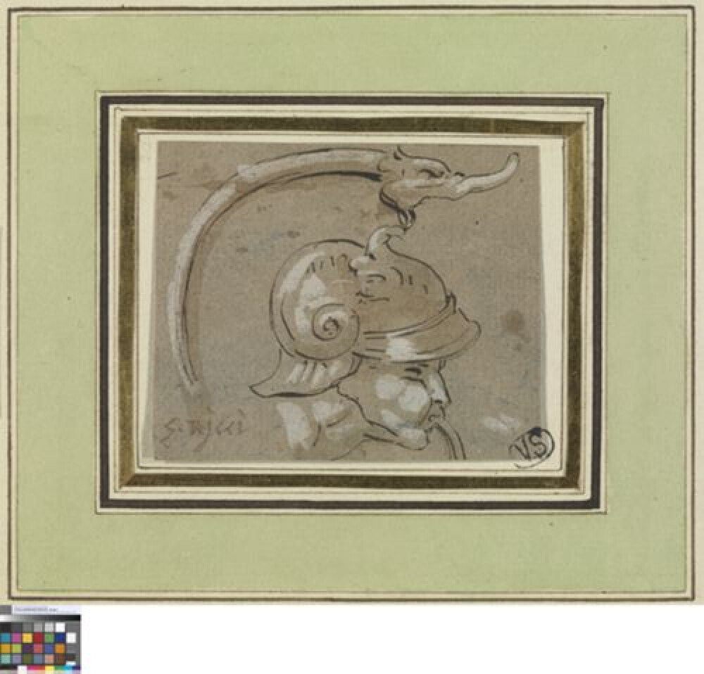 De tekening behoort tot een groep van vijf bladen (nrs. 0000.GRO1730.II, 0000.GRO1731.II, 0000.GRO1745.II, 0000.GRO1746.II en 0000.GRO1747.II) die klaarblijkbelijk alle van dezelfde hand zijn. De inscripties Pietro da Cortona en S. Ricci, die op deze tekeningen voorkomen, kunnen niet als signaturen worden geïnterpreteerd en de genoemde kunstenaars zijn zeker niet de auteurs van de tekeningen. Ook de datum1679 op een van de bladen (nr. 1745) is niet geloofwaardig. Waarschijnlijk dateren de tekeningen uit de eerste helft van de achttiende eeuw. In hoeverre werkelijk motieven uit schilderijen van Pietro da Cortona en Sebastiano Ricci gekopieerd zijn, is niet uitgemaakt.