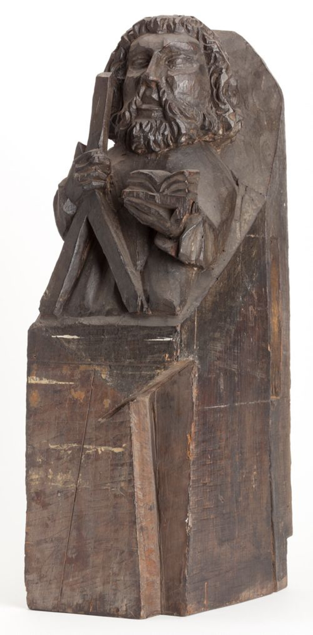 14de eeuwDeze balkzool stelt Sint-Bartholomeus voor, herkenbaar aan zijn attributen het mes en het boek. Deze balkzool is afkomstig uit het voormalige Sint-Juliaansgodshuis te Brugge.