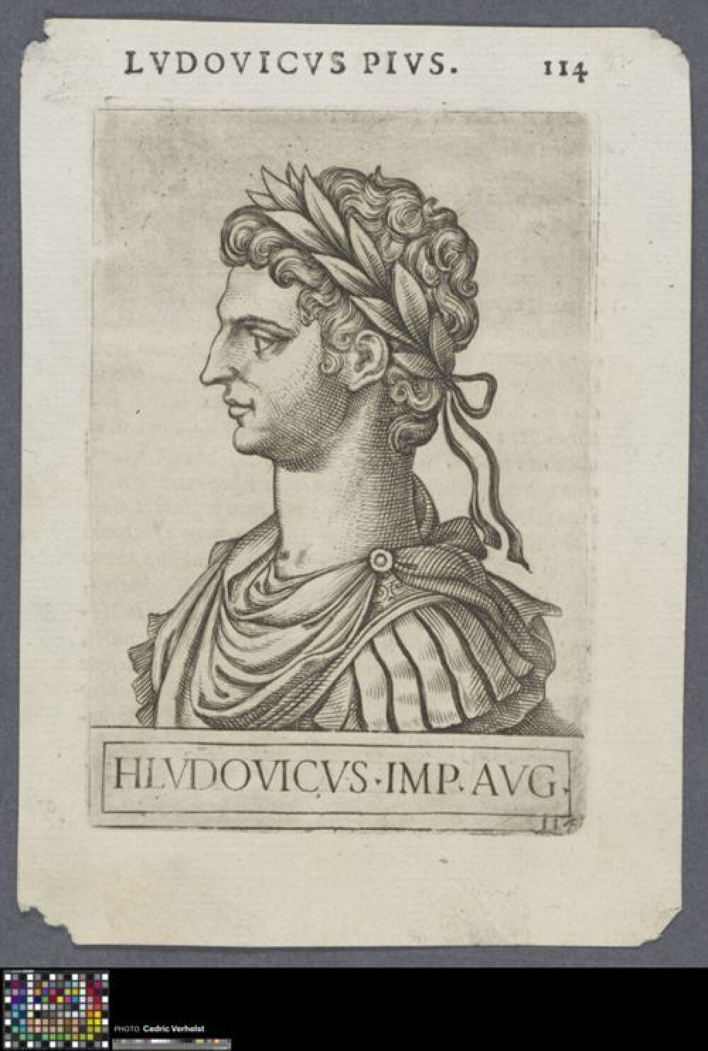 16de eeuwLotharius I (Aquitanië, 795 - Prüm, 29 september 855) was Rooms-keizer van 817 tot 855. Hij was de oudste zoon van Lodewijk de Vrome en Ermengarde van Haspengouw en regeerde samen met zijn vader tot 840. Na de dood van de vader bundelden Karel en Lodewijk hun krachten tegen Lotharius in een drie jaar durende burgeroorlog (840-843). De strijd tussen de broers leidde direct tot het uiteenvallen van het Frankische Rijk dat door hun grootvader Karel de Grote was opgebouwd. Dit legde de basis voor de ontwikkeling van het moderne Frankrijk en Duitsland. Hij wordt halvelings afgebeeld en positioneert zich naar rechts, hierdoor is zijn linkerprofiel zichtbaar. Zowel boven als onder de voorstelling staat een opschrift dat de geportretteerde identificeert. Op de verso van de prent is een doorlopende tekst leesbaar, deze identificeert de keizer op de volgende pagina in de publicatie. De prent is een illustratie uit Tomasz Treters "Romanorum Imperatorum Effigies" (Rome, 1583). De publicatie bestaat uit 157 gegraveerde portretten van Romeinse keizers door Giovanni Battista de' Cavalieri. Maakt deel uit van het album met (losse) portretten uit de 16de en 17de eeuw (2014.GRO0019.III).
