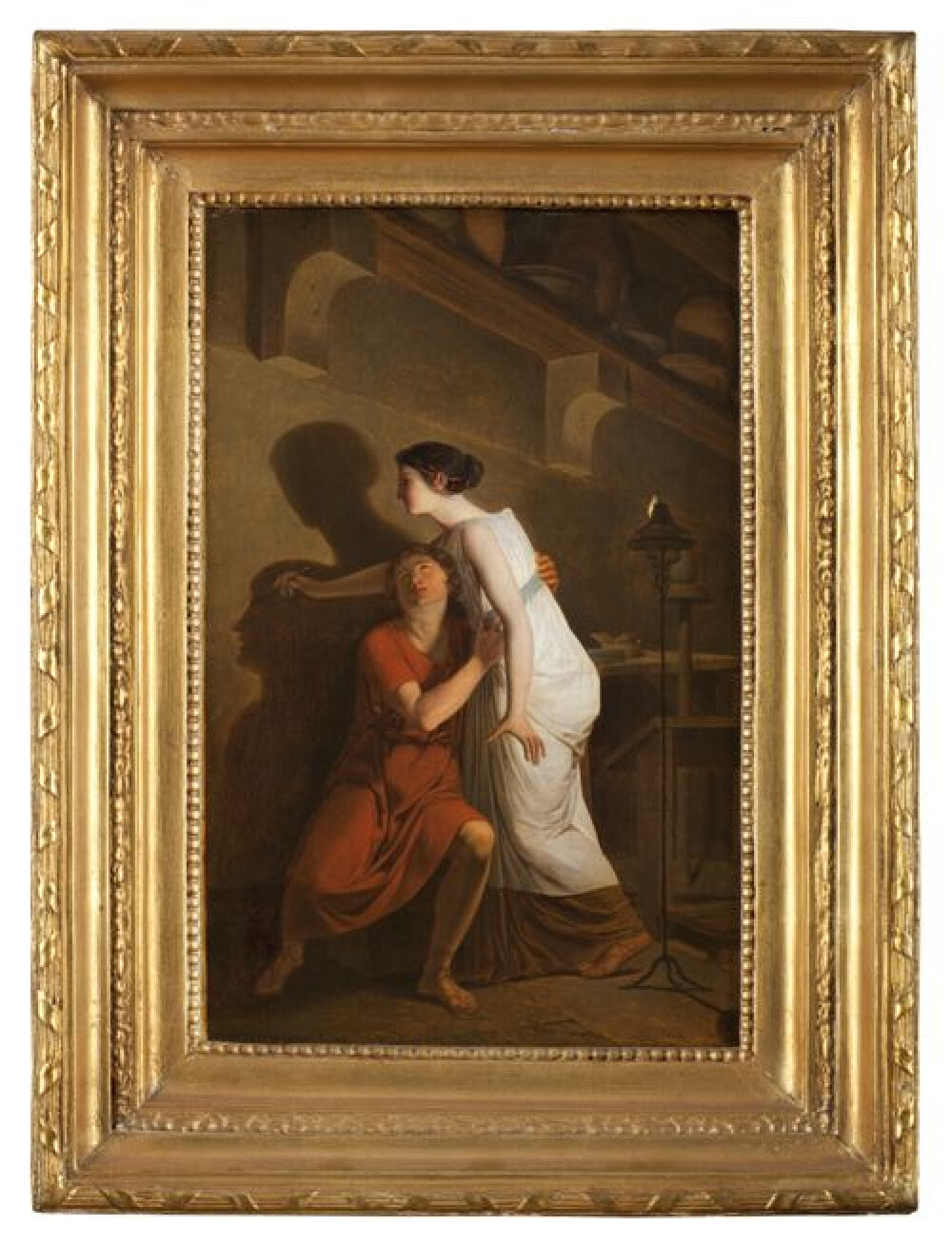 Suvée takes up a theme that reflects a trend from the Enlightenment: shadow portraiture. A “portrait à la Silhouette” involves tracing the outline of a facial profile and cutting it out. The result is a razor-sharp contrast between a black portrait against a light background, with details in the contours of collars, hats and wigs. A complex shape is thus reduced to a single-colour image. The focus is on simplicity and linearity, key elements in the neoclassical aesthetic. The link to Antiquity – such as texts by Pliny – plays an important role in imagery. The dissemination of the theory that human personality can be read from the face caused increased interest in silhouette portraits. Tracing facial contours evolved from an amusing pastime in 18th-century French salons to an art form in its own right in the 19th century. It remained popular until the advent of the age of photography.