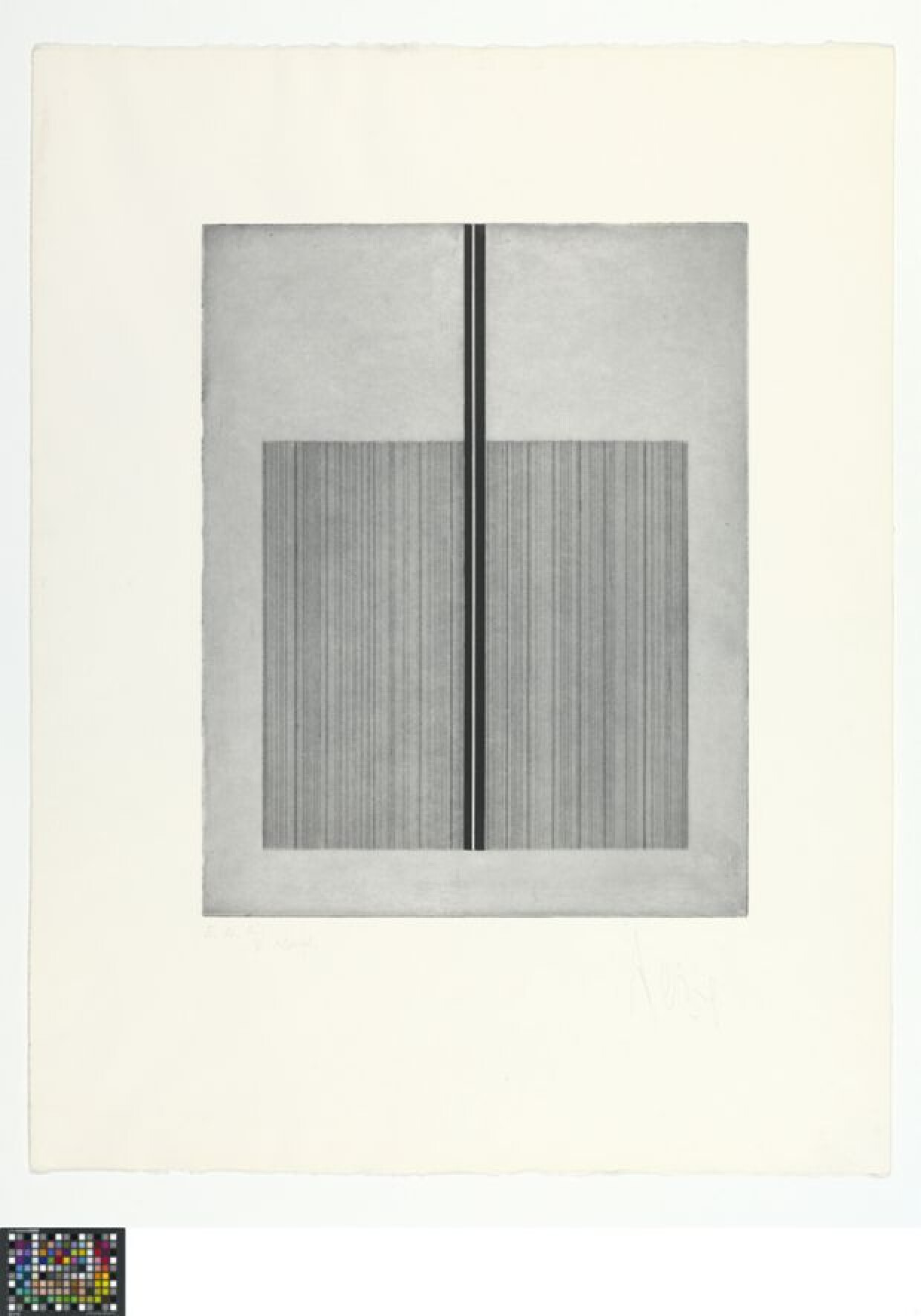 Kunstenaar Luc Peire (1916-1993) creëerde schilderijen, grafiek en architecturale integraties. Hij evolueert vanuit het expressionisme naar een stilering van de menselijke figuur om vervolgens in het midden van de jaren ‘50 zijn eigen stijl te ontwikkelen: het abstract verticalisme. Centraal in Peires abstract werk is de verticaliteit, de ruimte en de ritmiek. De verticale beweging staat voor hem symbool voor de mens als spiritueel wezen. Dit vertaalt zich in een compositie van verticale lijnen, balken en kleurvlakken die ruimte suggereren. Kenmerkend is ook het intens coloriet zoals rood, blauw, geel en oranje, dat gecontrasteerd wordt met zwart en wit. Naast schilder was Luc Peire ook graveur. Hij bezat een uitstekende kennis van de traditionele druktechnieken en realiseert etsen en aquatinten. Peire prepareert en graveert zelf zink- en koperplaten die hij op zijn eigen drukpers afdrukt of laat afdrukken in gespecialiseerde drukkerijen in Parijs. Het Prentenkabinet van Musea Brugge bezit het volledig grafisch oeuvre van Luc Peire, dat in 1992 geschonken werd door de kunstenaar zelf. Het gaat om 86 ingelijste werken. In 2017 schonk de Stichting Jenny & Luc Peire het laatste grafisch werk dat Luc Peire realiseerde in 1993 voor zijn overlijden in datzelfde jaar. Deze werken dateren van 1943-1993 en bieden een mooi overzicht van Luc Peires stijlevolutie. Sommige gravures worden gerealiseerd naar een van zijn schilderijen, zoals bijvoorbeeld ‘Ramses’ of ‘Yagul’. Het grafisch oeuvre van Luc Peire is onder te verdelen in drie periodes: - Figuratieve periode van 1935-1944. - Overgang naar abstractie rond 1955 met de etsen ‘Composition’ en ‘Composition-Espace’. - Ontwikkeling van zijn verticale abstracte stijl en uitbouw van zijn grafisch oeuvre vanaf 1964 tot 1993. Het graveren wordt een geliefde techniek van Peire vanaf 1964. Hij realiseert gravures in grijstinten, maar ook kleurdrukken waarbij hij één kleur op de voorgrond brengt. In deze periode heeft Luc Peire zijn eigen abstracte stijl verder ontwikkeld. Net zoals in zijn schilderijen bouwt hij zijn gravures op vanuit een ritmische compositie van verticale lijnen en kleurstroken op een monochroom vlak.
